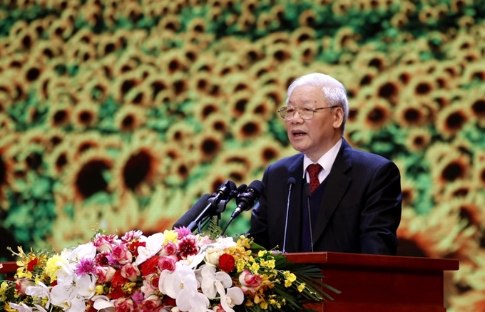 Tổng Bí thư, Chủ tịch nước Nguyễn Phú Trọng đọc diễn văn tại buổi Lễ