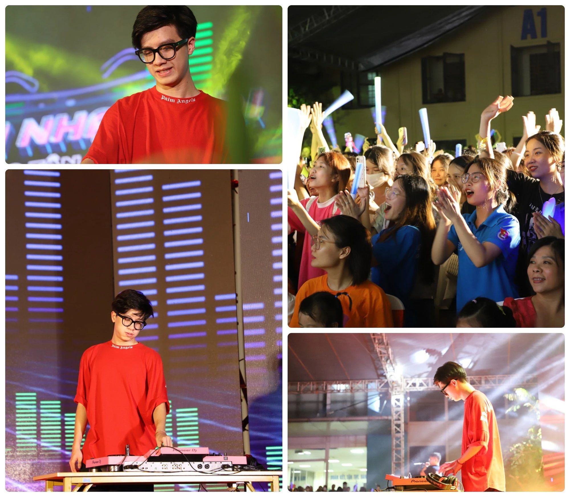 Tạm biệt phần giao lưu ấn tượng với ca sĩ HuyR, khán giả tiếp tục cháy lửa với màn DJ sôi động của chàng DJ điển trai Đức Mạnh. Không khí của đại nhạc hội càng thêm tưng bừng, thầy cô và các bạn sinh viên cùng hòa chung vào những giai điệu âm nhạc sôi động.