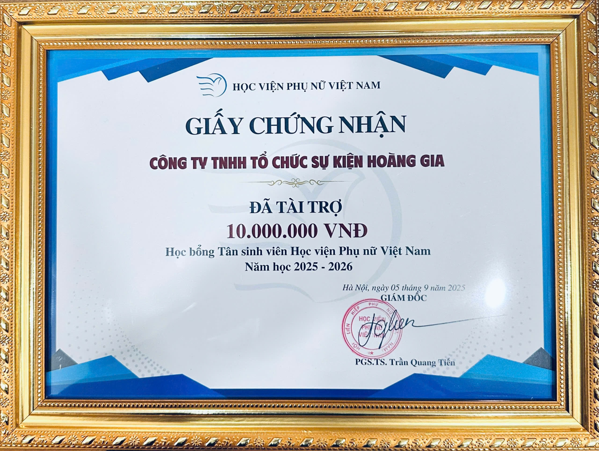 Học viện Phụ nữ Việt Nam cũng bày tỏ lời cảm ơn chân thành tới các nhà tài trợ, doanh nghiệp và đơn vị đồng hành đã ủng hộ kinh phí học bổng, khẳng định tinh thần sẻ chia, đồng hành vì sự nghiệp giáo dục và đào tạo.