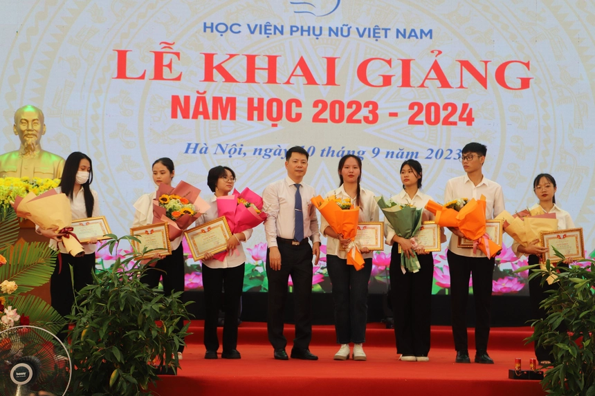 Phát biểu tại Lễ Khai giảng, PGS.TS Trần Quang Tiến, Bí thư Đảng uỷ, Giám đốc Học viện Phụ nữ Việt Nam cho biết: Nhìn lại năm học 2022-2023 đã đi qua, có thể khẳng định Học viện tiếp tục đạt được những thành tựu to lớn trên tất cả các lĩnh vực công tác; đã phát huy tốt các kết quả, giá trị đạt được của 10 năm đầu tiên thành lập Học viện và hơn 60 năm truyền thống vẻ vang của nhà trường. Kết quả nổi bật nhất đến từ việc Học viện nhanh chóng chuyển đổi sang "trạng thái bình thường mới" sau đại dịch COVID-19, gắn với tiếp tục duy trì ở tiêu chuẩn cao phương phức giảng dạy, mô hình học tập kết hợp (blended learning) ở tất cả các lớp học và đẩy mạnh xây dựng hệ thống CNTT đáp ứng yêu cầu chuyển đổi số một cách toàn diện, triệt để.