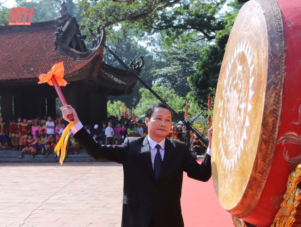 Trong không khí trang nghiêm, tưng bừng của ngày đại lễ tại Khu di tích Quốc gia đặc biệt Lam Kinh, đồng chí Đỗ Minh Tuấn, Phó Bí thư Tỉnh ủy, Chủ tịch UBND tỉnh đã đánh trống khai hội.