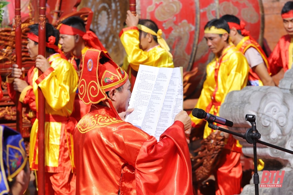 Tiếp đó, nghi thức truyền thống đọc chúc văn tấu cáo, tưởng nhớ công lao của Đức Thái Tổ Cao hoàng đế, các vị vua, hoàng Thái hậu nhà Lê, công thần và các tướng sĩ nghĩa quân Lam Sơn đã diễn ra trang trọng tại Sân rồng trước Chính điện Lam Kinh.